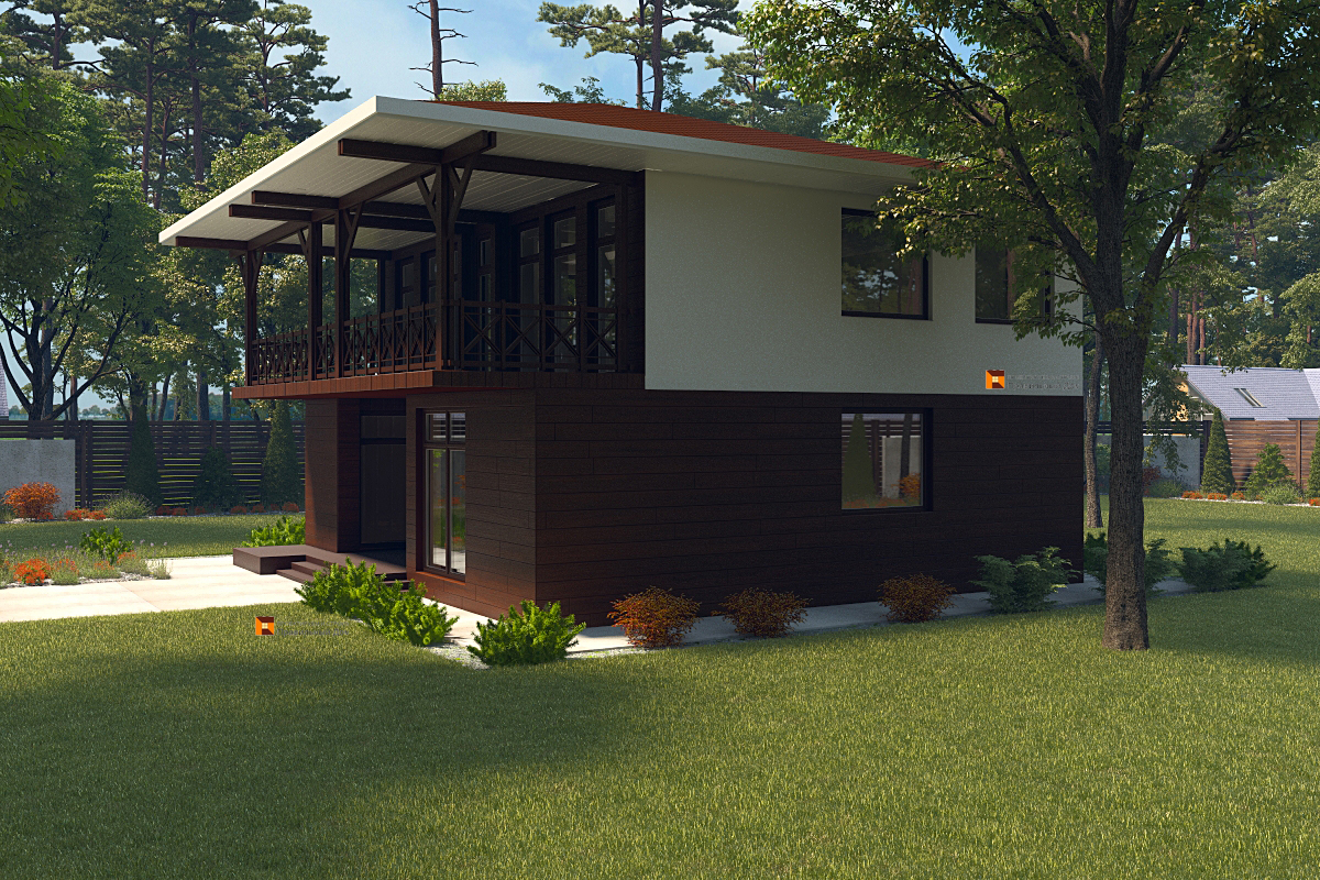 Этажность - 2 эт. Площадь застройки - 10м х 8.8м (88м кв.) Внутренняя площадь - 140м кв. Плюс дополнительные площади (терраса) - 24м кв.